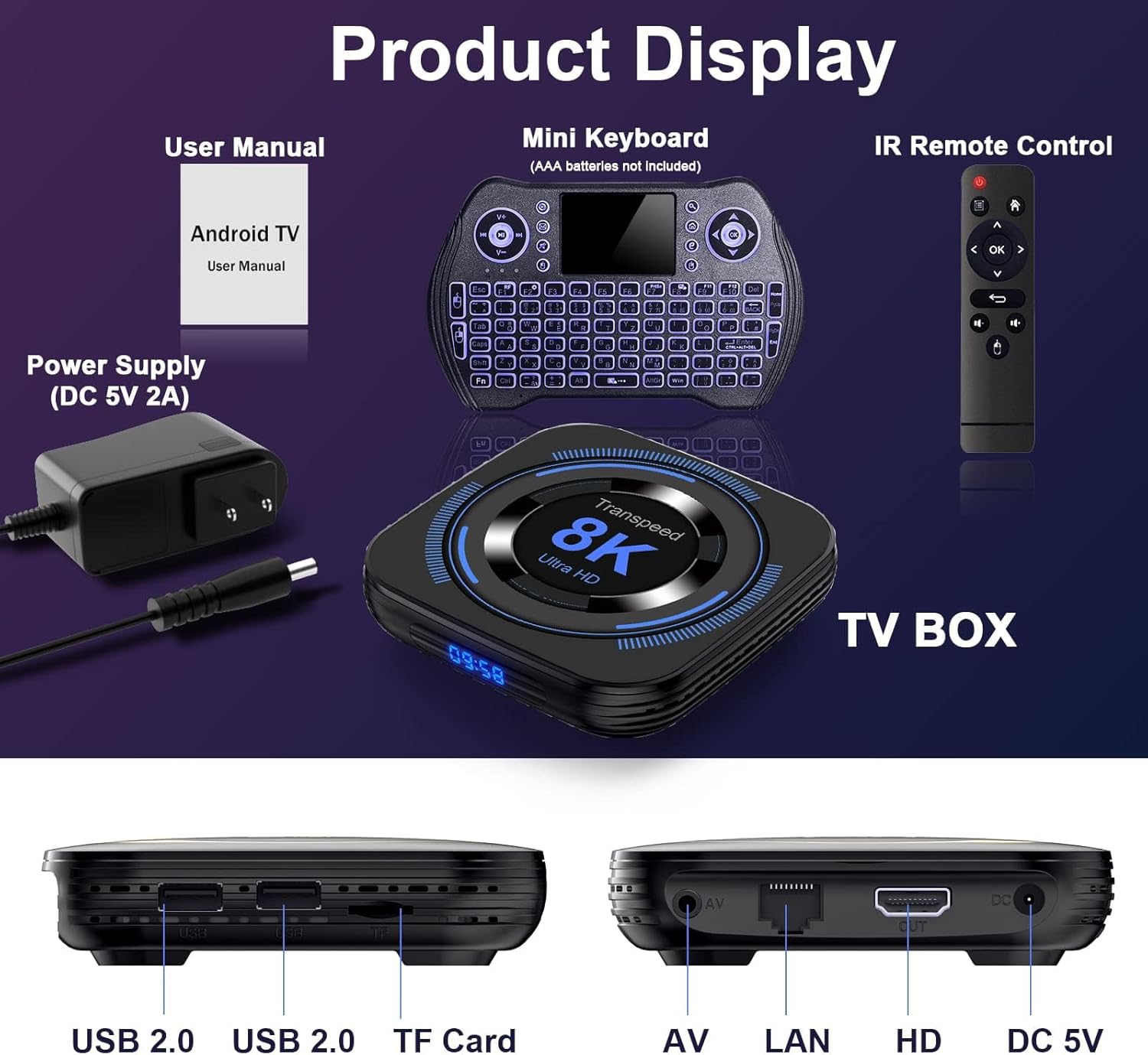 【What you get】Bundle consists of: Android field, US energy adapter, Mini Keyboard, HD cable, distant management, person guide, and our devoted after-sales crew. When you have any questions or encounter any points, please do not hesitate to succeed in out to Transpeed (Be aware: AAA batteries will not be included).
