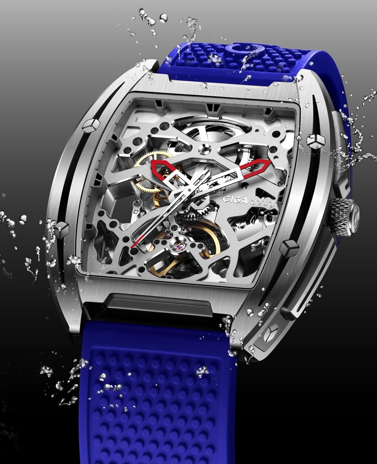 CIGA Design Z Collection Automated Mechanical Watch, Luxurious Skeleton Wristwatch Tonneau with Silicone Strap Stainless Metal Enterprise Gown Waterproof Timepiece Items for Males and Girls