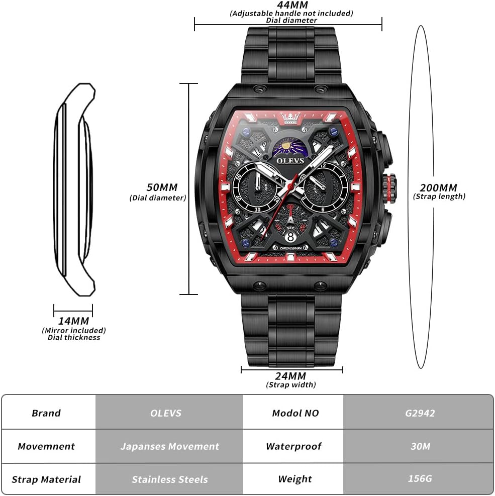 OLEVS Males Watches Sq. Enterprise Costume Diamond Analog Quartz Date Luxurious Look ahead to Males Informal Stainless Metal Waterproof Luminous Wrist Watch